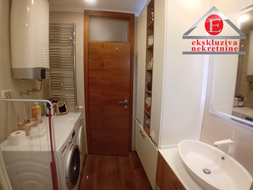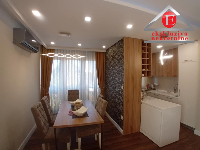 -Mogućnost koristenja podnog grijanja tokom zime, ali i inverter klima uredjaja koja moze grijati do -20 stepeni. Stan je dodatno opremljen spuštenim plafonima, led rasvjetom sa modernim lusterima,daljinsko podizanje roletni, alarm sistem.