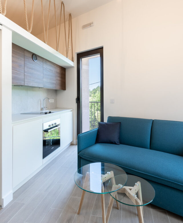Opis: Ovaj potpuno novi studio sa 20m² unutrašnjeg prostora + 9m² galerije, smješten na 1. spratu naše nove rezidencije Mini Condos, u potpunosti je namješten i opremljen. Sastoji se od: