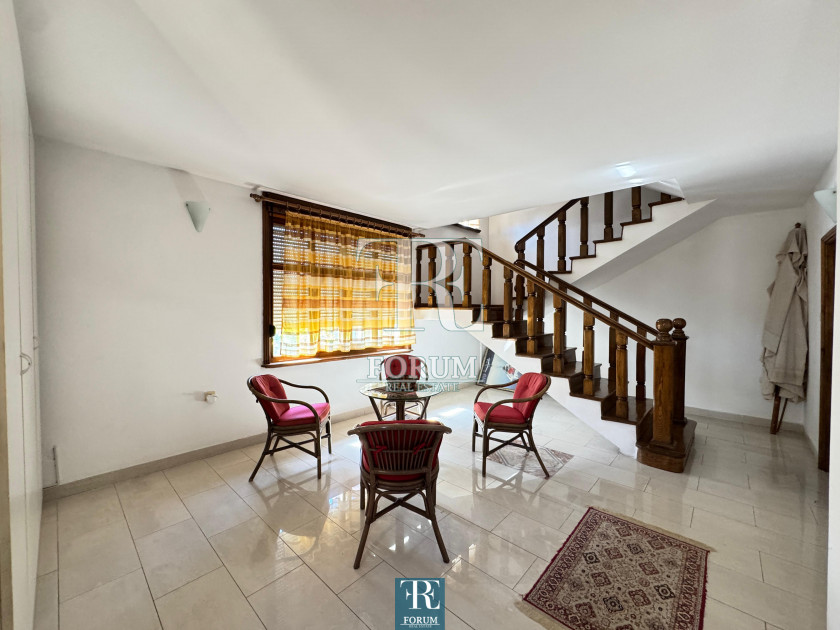 Na prvom spratu nalazi se dnevni boravak sa kuhinjom i trpezarijom, toalet i dvije terase.