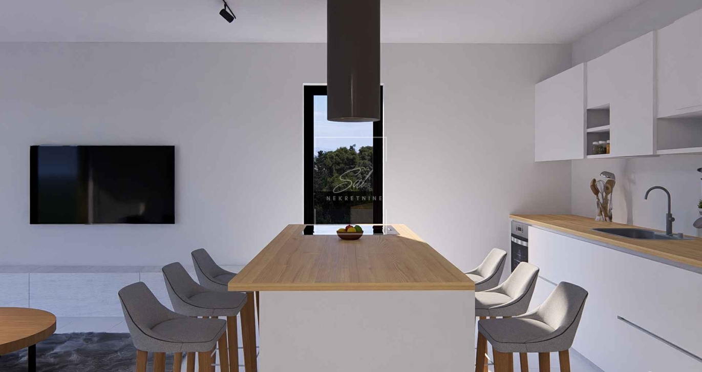 Opis: Prodaje se prostrani stan na drugom katu novogradnje na otoku Viru – s krovnom terasom i pogledom na more i Velebit!