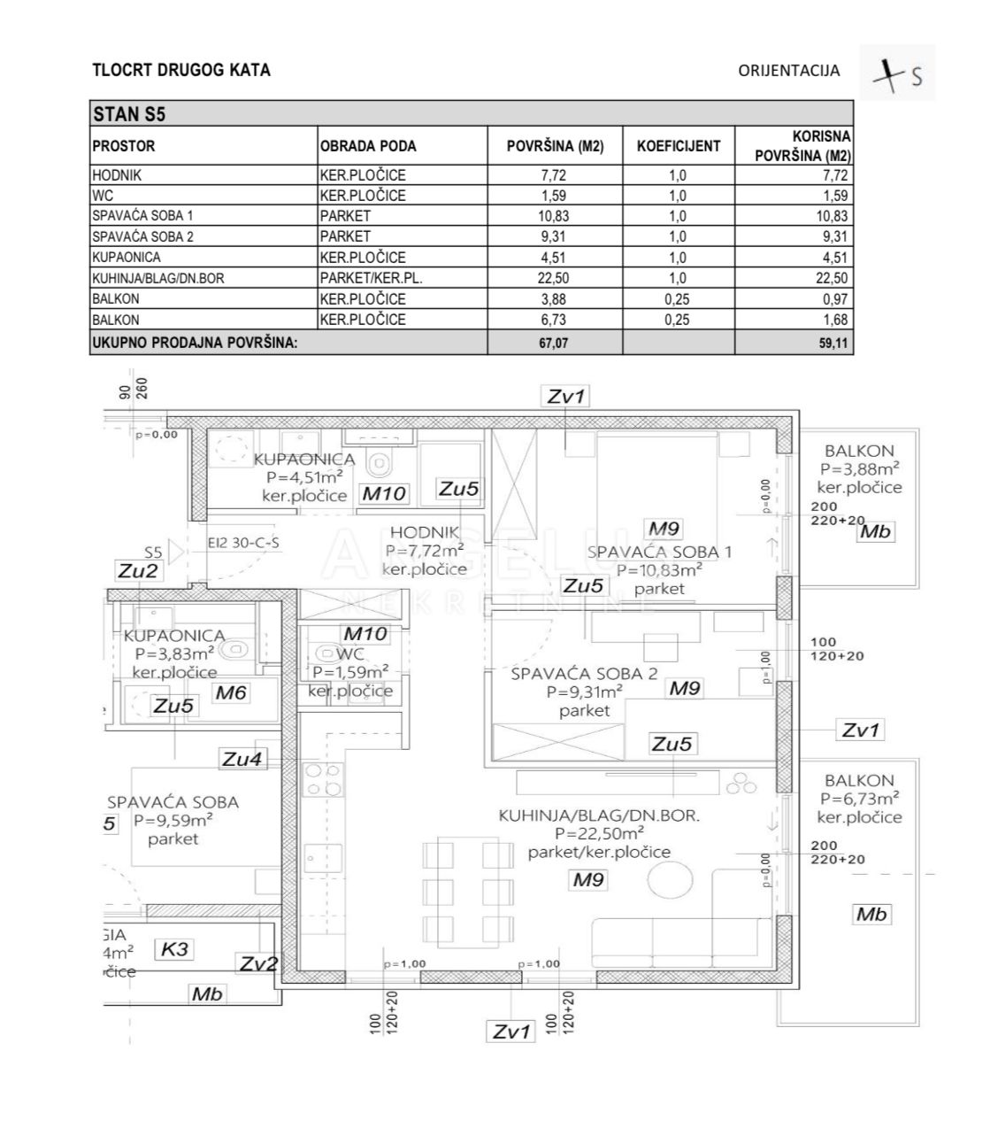 Opis: Agencija za nekretnine Angelus nekretnine Vam nude na prodaju dvosoban stan od 59.11 m2 u NOVOGRADNJI u Splitu – predio Mejaši