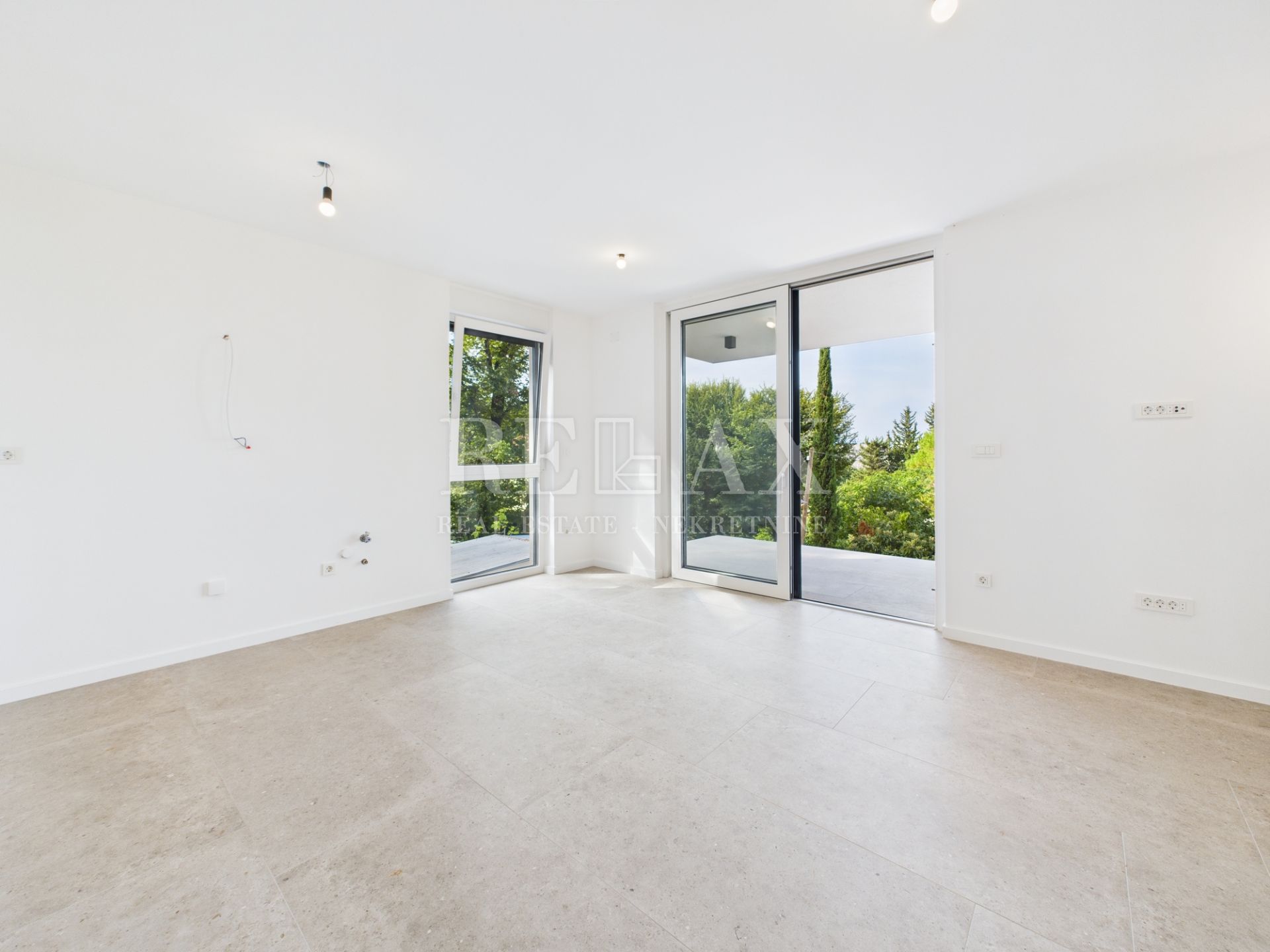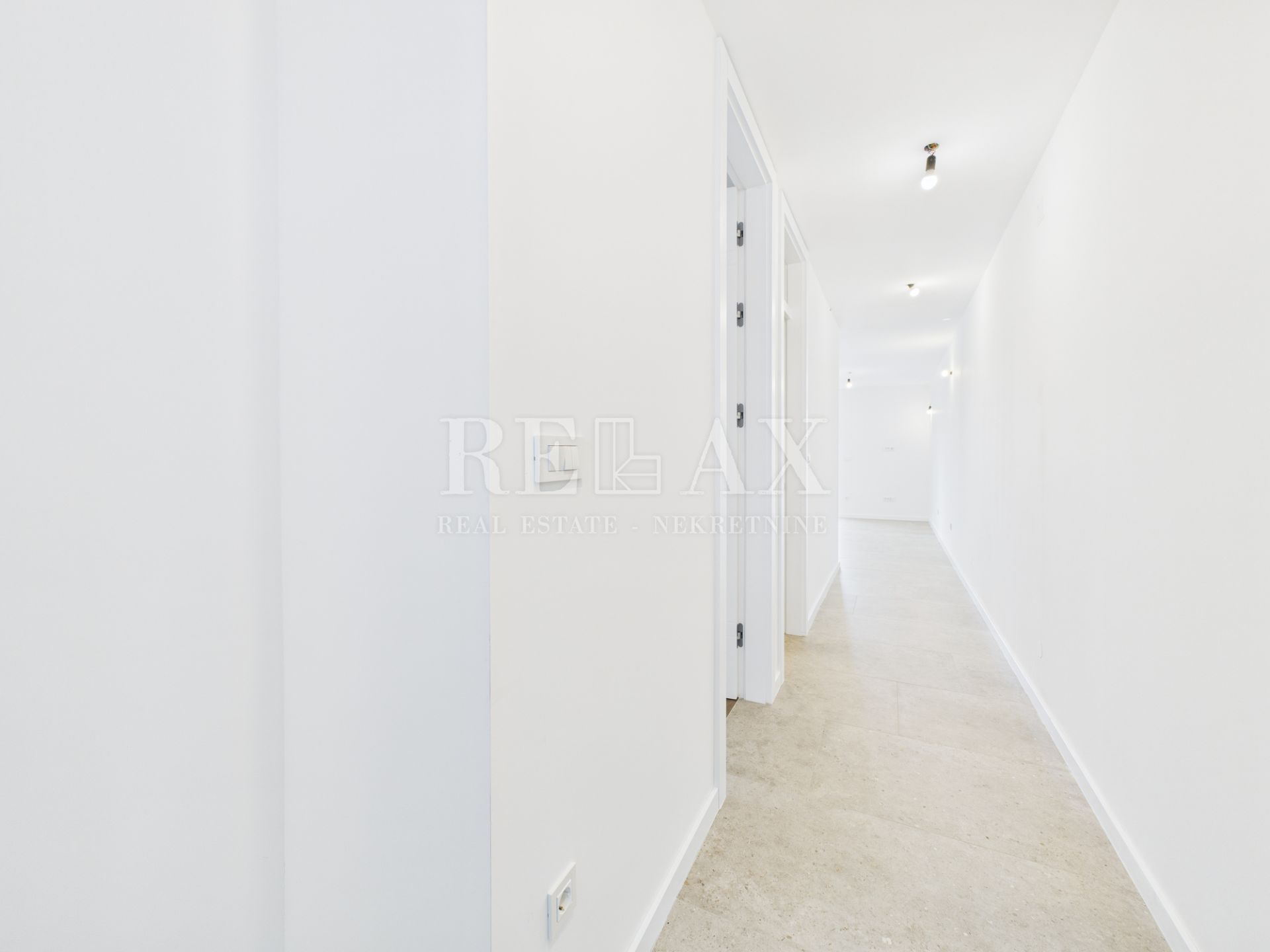 Pri gradnji su korišteni visokokvalitetni materijali: termo blok i termo fasada, keramika i sanitarije prve klase, PVC stolarija s električnim roletama te walk-in tuš sa staklenom kabinom i podnom kanalicom. Stan je opremljen podnim grijanjem na struju i klima uređajima u svakoj prostoriji, uz mogućnost Wi-Fi upravljanja.