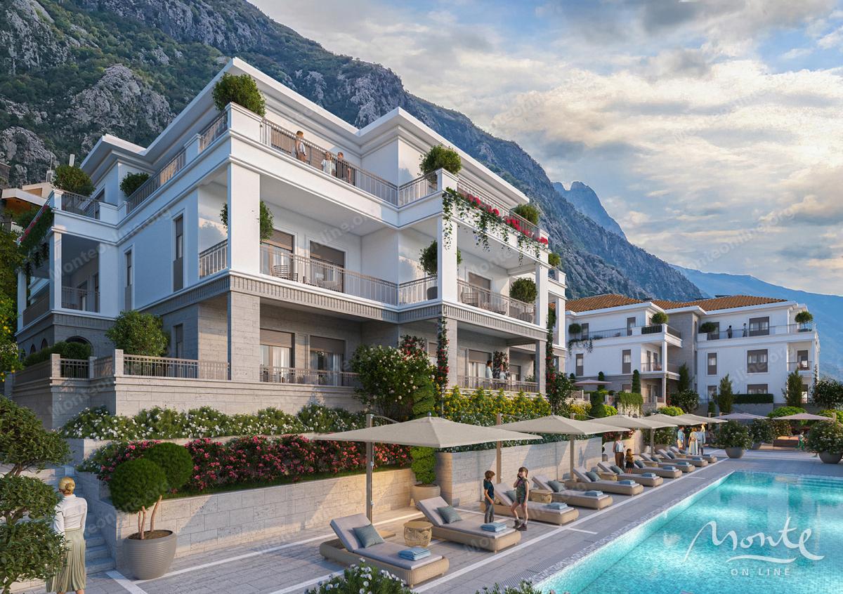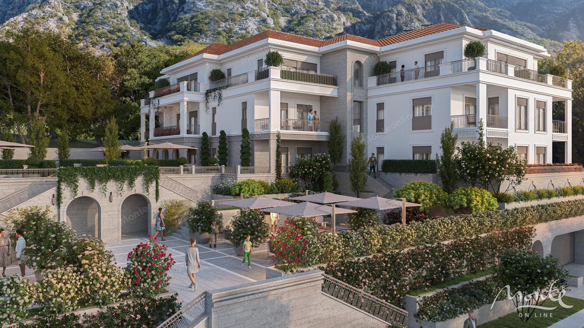 Opis: Prodaju se moderni apartmani u novom stambenom kompleksu sa bazenom, smještenom pored autoputa u Dobroti, na samo nekoliko minuta od mora i Starog grada Kotora.