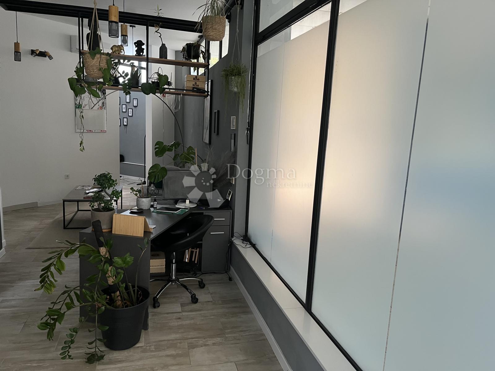 Prostor je potpuno renoviran prije ulaska sadašnjih najmoprimaca, što ga čini spremnim za korištenje bez dodatnih ulaganja. Sastoji se od recepcije, ureda, skladišta i sanitarnog čvora. Uređenje je moderno i funkcionalno, s čistim linijama i elementima koji prostoru daju profesionalan, ali ugodan ambijent. Dodatnu vrijednost prostoru daje velika staklena stijena koja pruža obilje prirodnog svjetla i izravan pogled na zelenu površinu ispred zgrade, što je idealno za stvaranje privlačnog radnog okruženja.