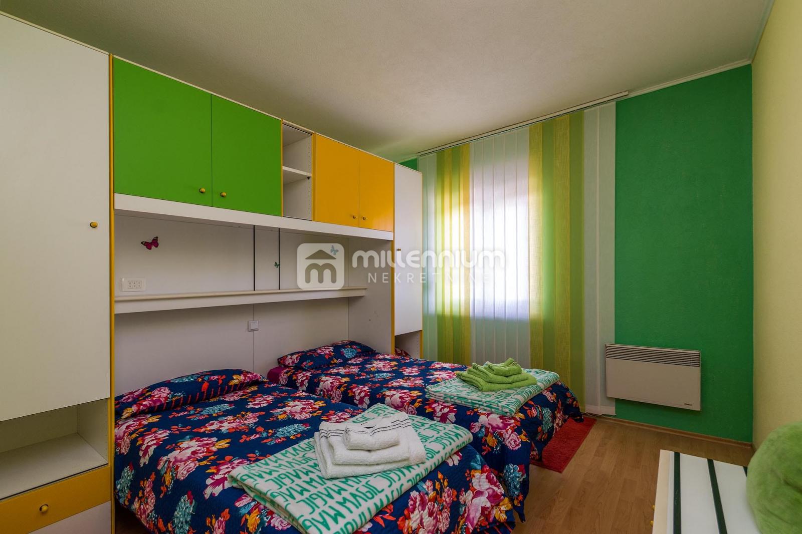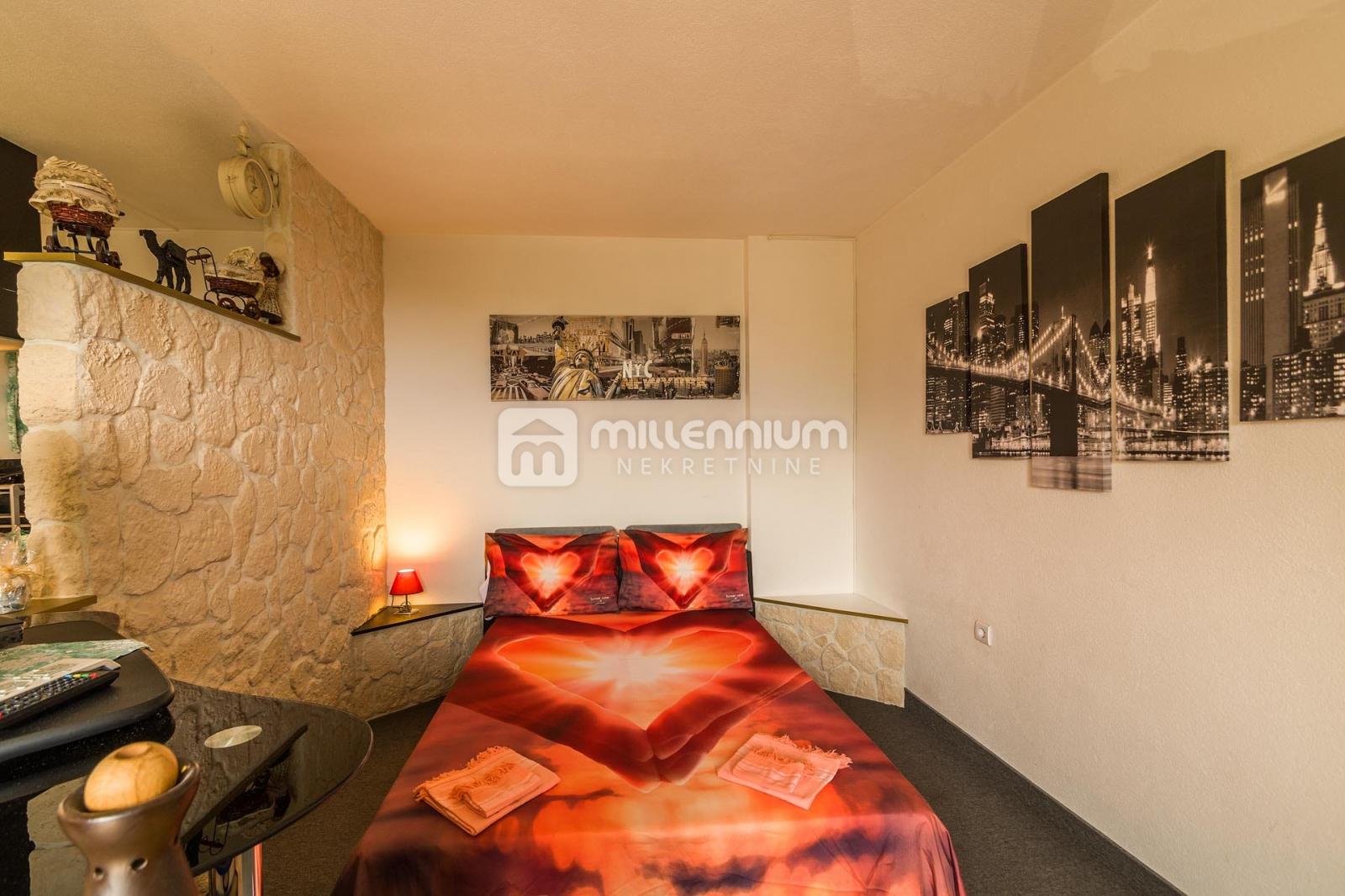 Opis: Iznajmljuje se 1-sobni stan s dnevnim boravkom od 55m² na Zametu, smješten na 2. katu manje kuće s više apartmana. Stan se sastoji od jedne spavaće sobe, dnevnog boravka gdje je još jedan pomoćni ležaj za 2 osobe, kuhinje te kupaonice. Potpuno je namješten i opremljen svim potrebnim aparatima za udoban boravak.