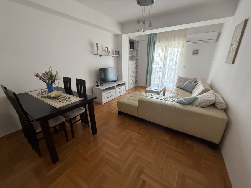 Opis: Lijepo opremljen dvosoban stan površine 78m² u City Kvartu, na petom spratu zgrade sa liftom. Potpuno je namješten i opremljen svim potrebnim uređajima, a nalazi se na jednoj od najtraženijih lokacija u Podgorici, u neposrednoj blizini restorana, kafića, marketa i ostalih sadržaja. Cijena mjesečnog zakupa iznosi 700 eura.