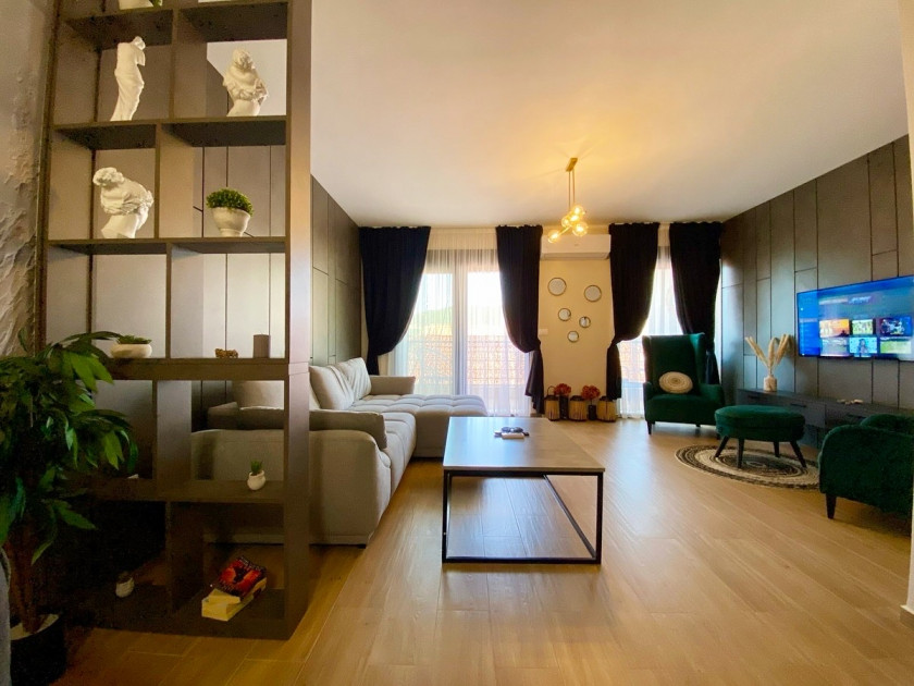 Dvije klime, podno grijanje, tri smart TVa, WiFi, mašina za veš, mašina za posuðe, električne roletne na prozorima, sofa koja se razvlači, kompletno posudje, kompletna posteljina…