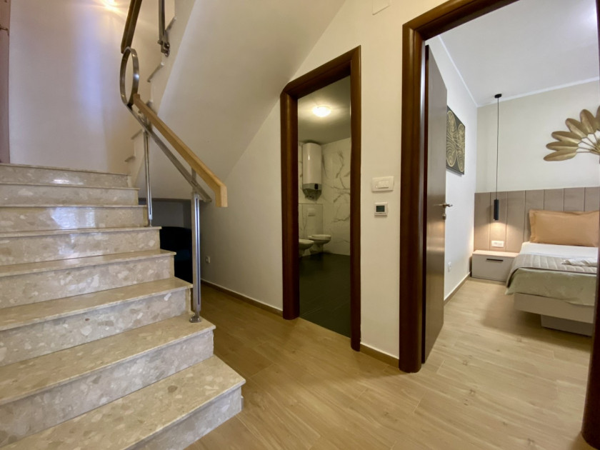 Na drugom spratu se nalaze dvije spavaće sobe, veliko savremeno kupatilo, ostava ispod stepenica i još jedna terasa sa pogledom na more.
