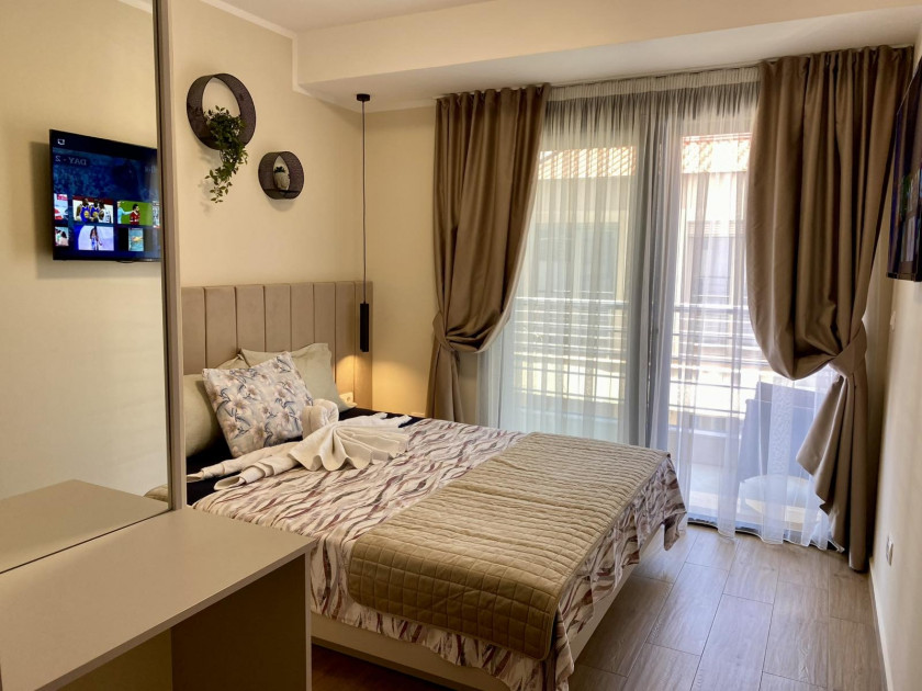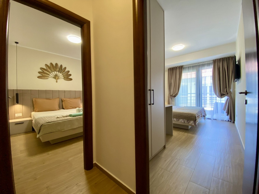 Stan se nalazi 6. i 7. sprat nove zgrade na prvoj liniji do šetališta u Rafailoviće, udaljen svega 100m od plaže.