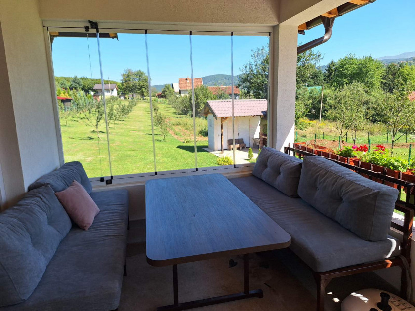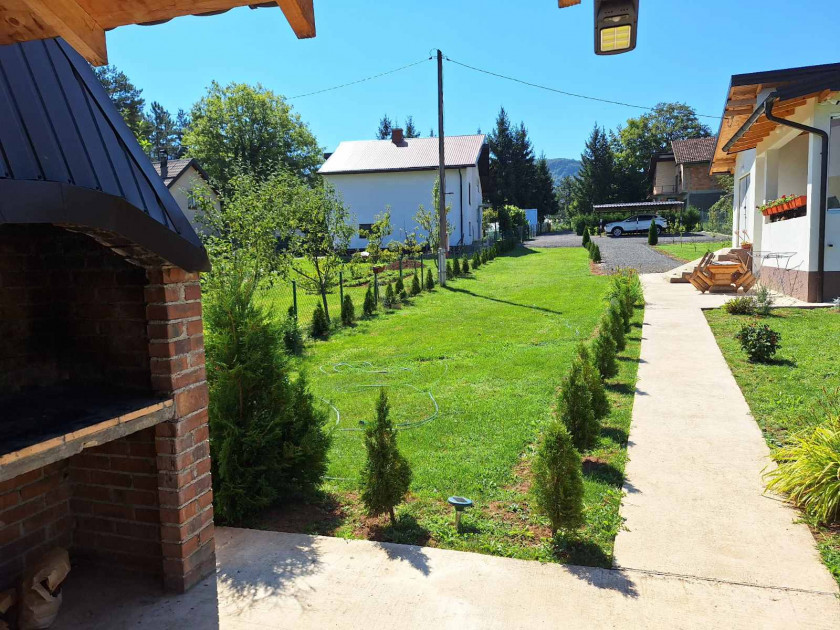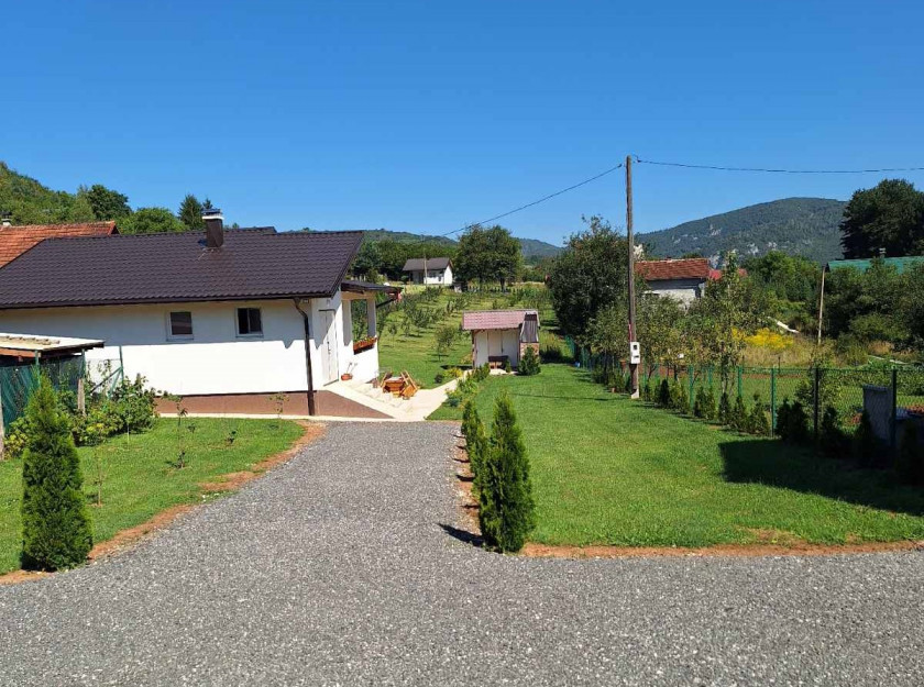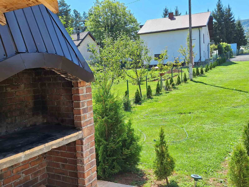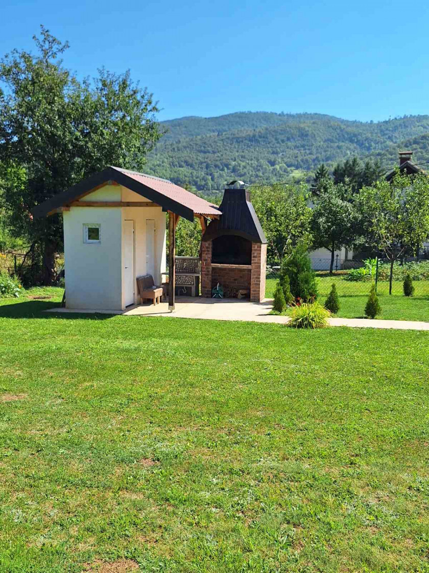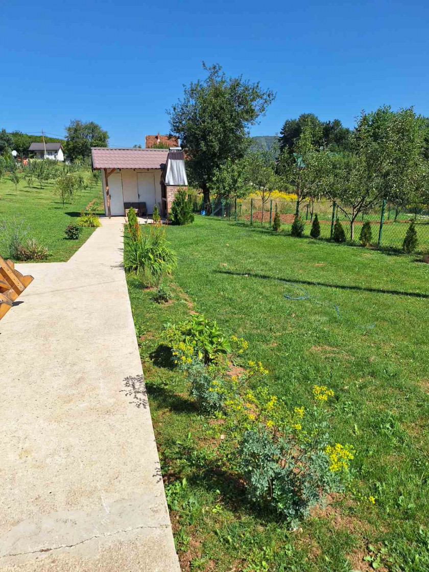 Na ulaznom dijelu se nalazi nadstrešnica za 1 automobil i parking za 5-6 vozila. Na imanju je voćnjak sa zasadom jabuke i šljive.Zidani roštilj sa nadstrešnicom..