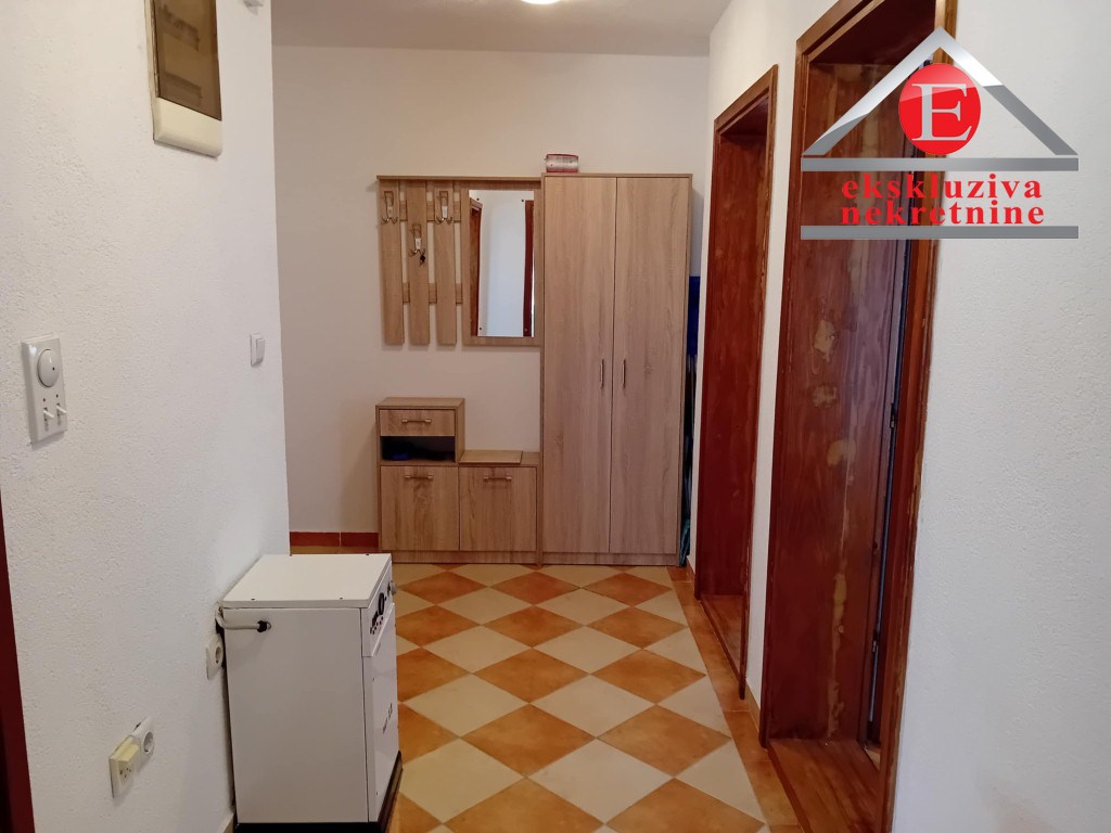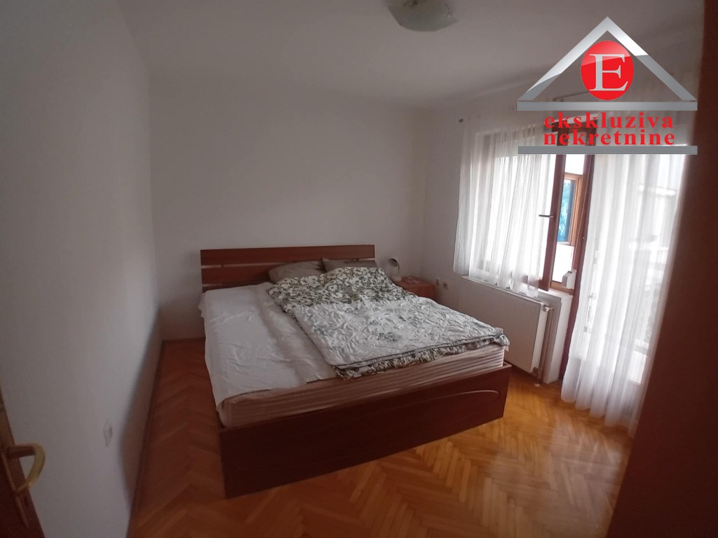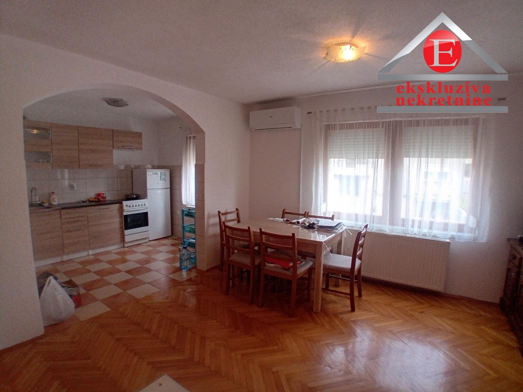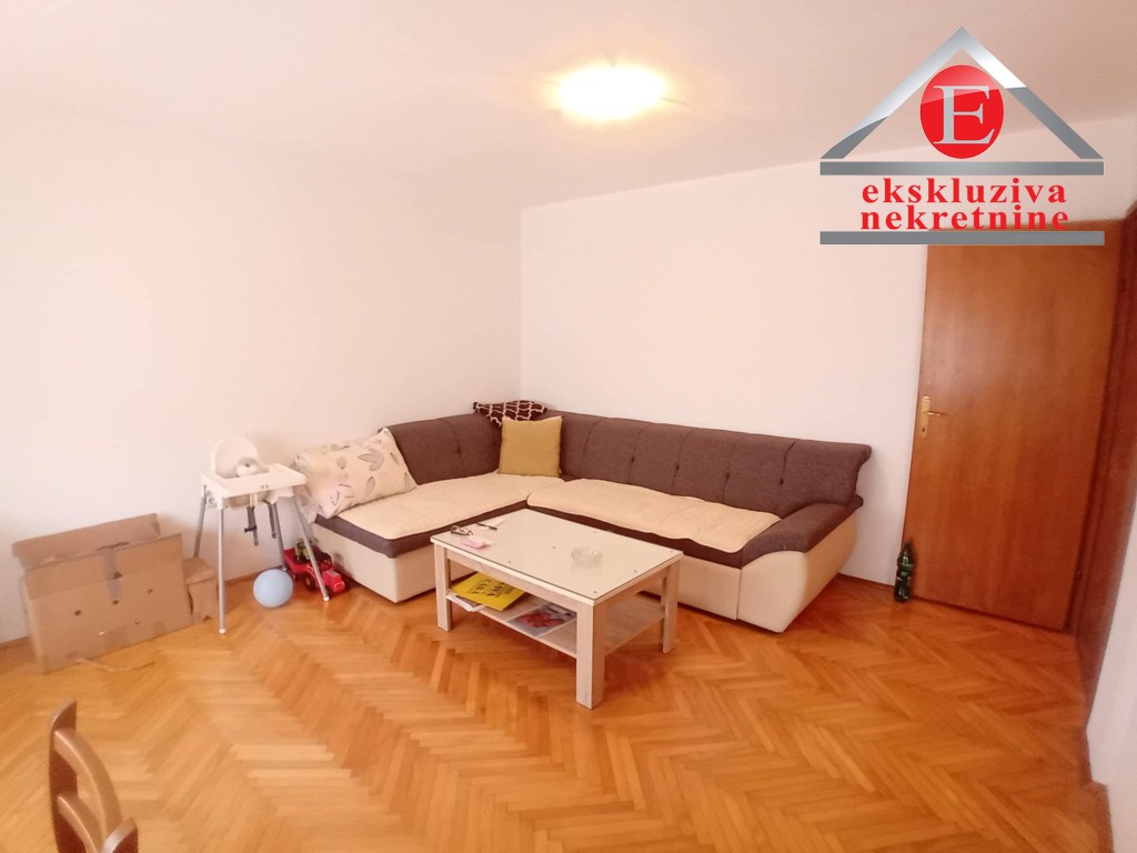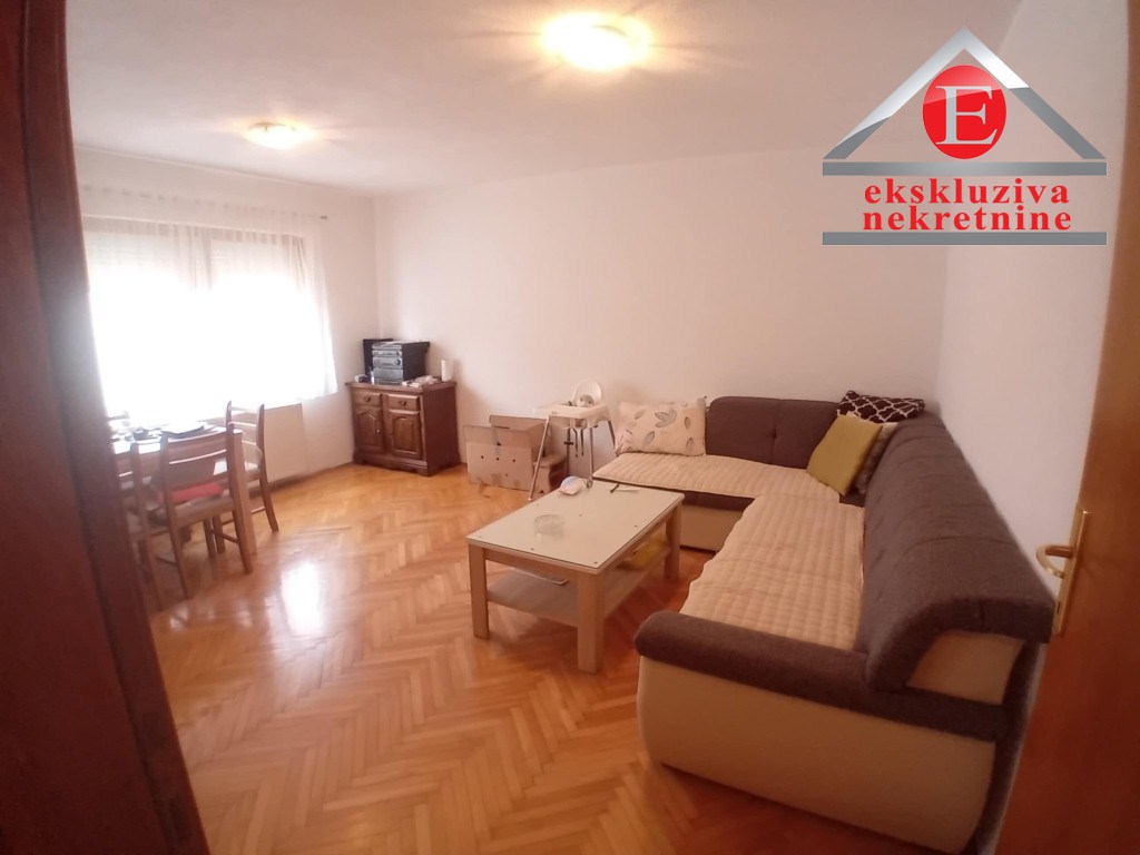 Opis: Kompletno namješten trosoban stan površine cca 75 m2 na I spratu nove gradnje. Sastoji se od uvučene kuhinj, dnevnog boravka sa trpezarijom, dvije spavaće sobe od kojih jedna ima izlaz na terasu, hodnika i kupatila. Opremljen je drvenom stolarijom, Aluminijskim roletnama, centralnim etažnim grijanjem, Inverter klima uređajem, kvalitetnim parketima, keramikom i sanitarijama.