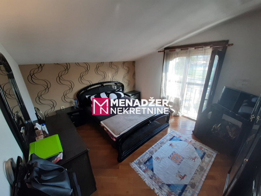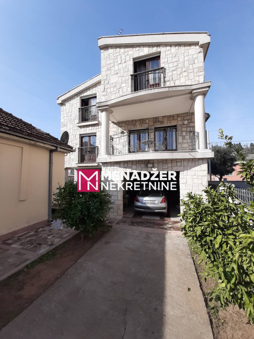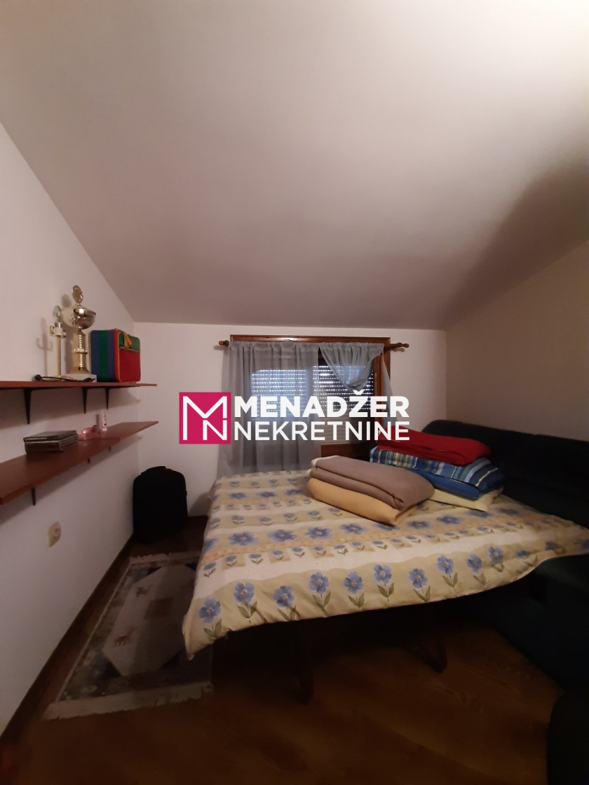 U PRIZEMLjU KUĆE SE NALAZI GARAŽA IZ KOJE SE MOŽE DIREKTNO UĆI U ULAZNI HODNIK KUĆE, IZ KOJEG SE UNUTRASNjIM STEPENICAMA DOLAZI DO PRVOG SPRATA U KOM SE NALAZI TOALET, VELIKI DNEVNI BORAVAK, TERASA, KUHINjA SA TRPEZARIJOM, PA OPET STEPENICAMA DO DRUGOG SPRATA NA KOM SU SMJEŠTENE ČETIRI SPAVAĆE SOBE i VELIKO KUPATILO..