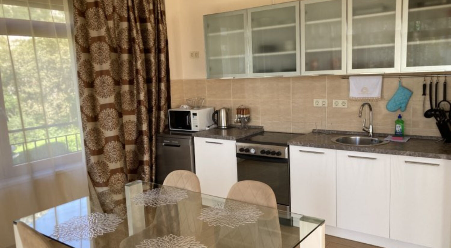 Kompleks se sastoji od dve trospratne zgrade. Svaka zgrada ima tri apartmana sa zasebnim ulazima. Kompleks sadrži bazen sa opremljenim prostorom za opuštanje pored bazena. Postoji dovoljno parking mesta za osam automobila. Terasa za odmor gleda na more.