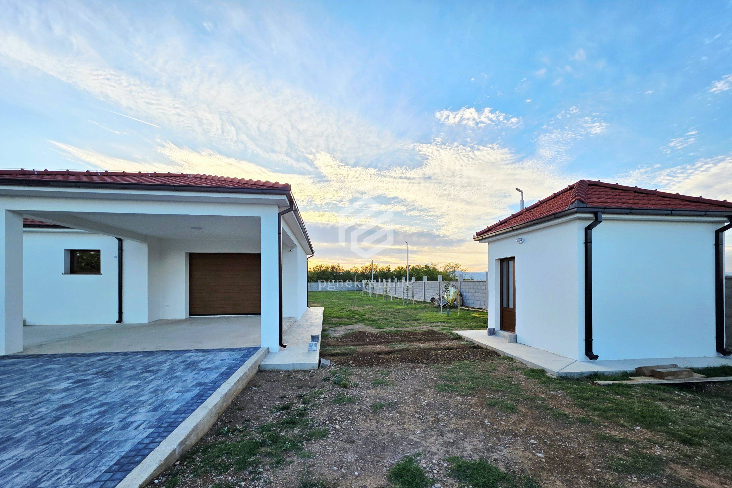 Kuća je potpuno nova, ograđena je sa svih strana zidanom ogradom i pokrivena 24-časovnim video nadzorom i alarmnim sistemom.