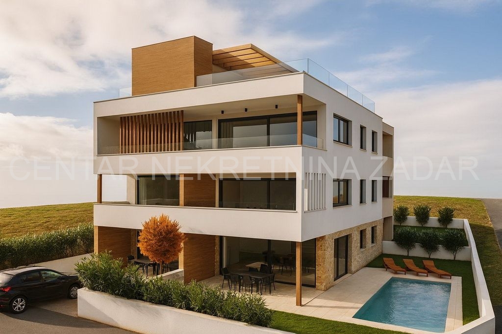Opis: Prodaje se penthouse sa krovnom terasom, samo 60 m od pješčane plaže. Zgrada je novogradnja sa 8 stanova, smještena u mirnom dijelu Privlake. Zgrada je u gradnji, a useljenje se planira u svibnju 2026.