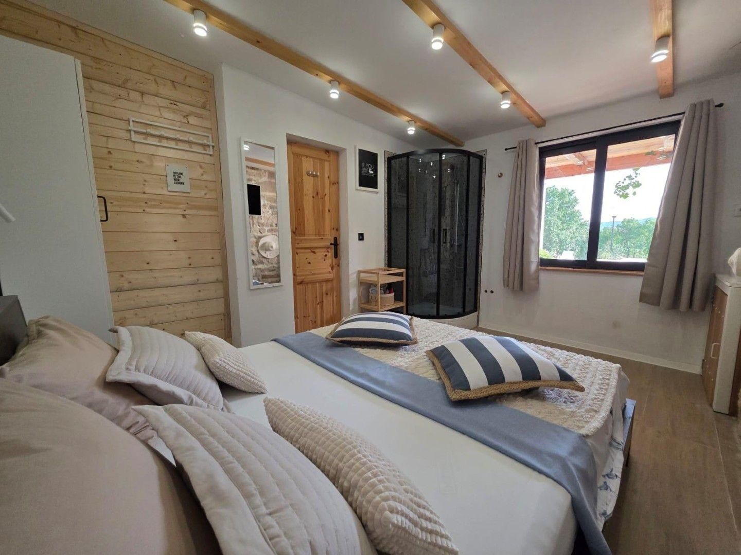 Sastoji se od kuhinje s trpezarijom i dnevnog boravka, dvije spavaće sobe(u sklopu jedne je tuš kabina), kupatila, natkrivene terase površine 18m2, bazena, parkinga te kultiviranog vrta.