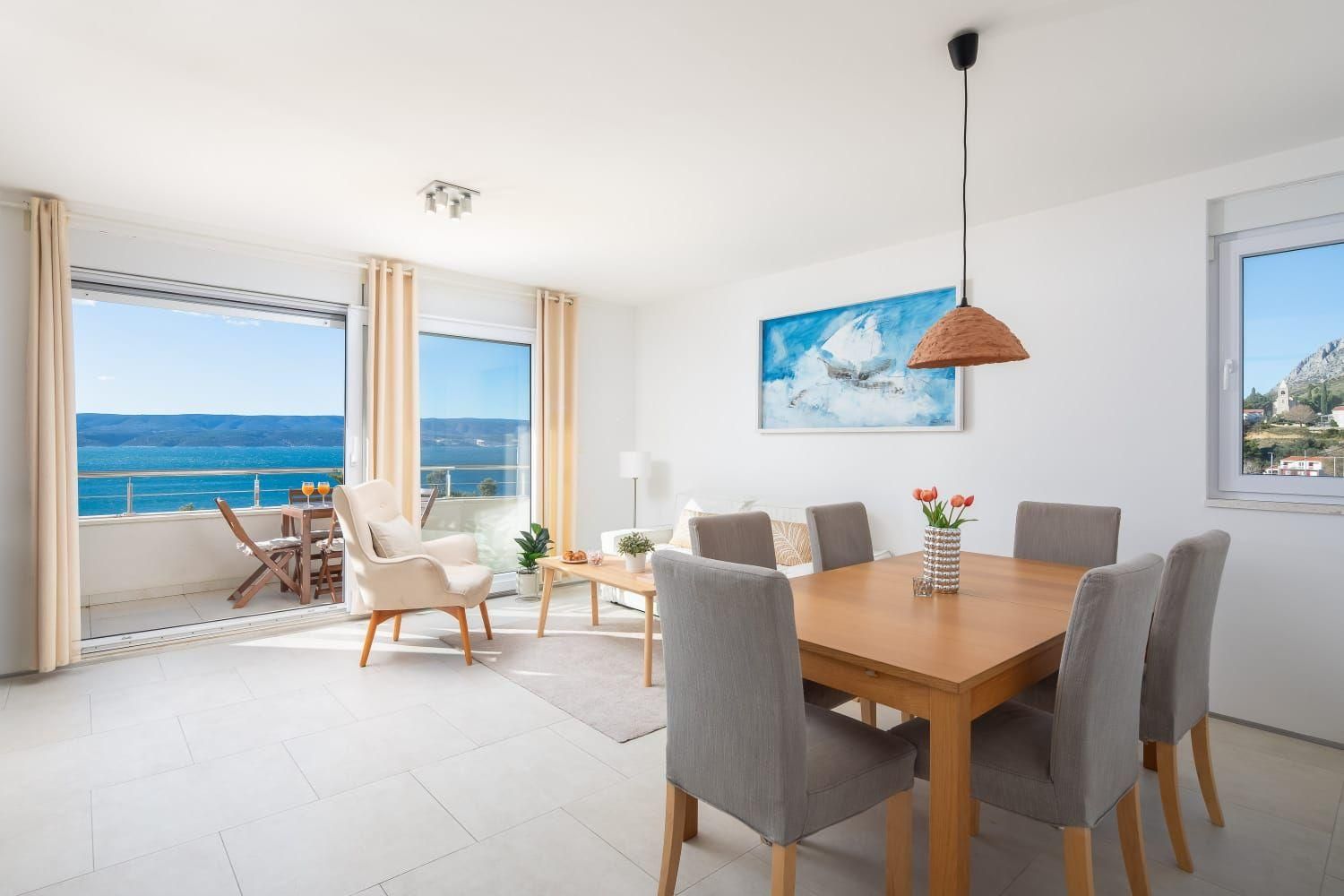 Opis: Na mirnoj lokaciji Omiške rivijere, svega 90 metara od mora i 10 minuta vožnje od grada Omiša, prodaje se moderan stan površine 75 m2 smješten u novoizgrađenoj vili s bazenom i liftom.