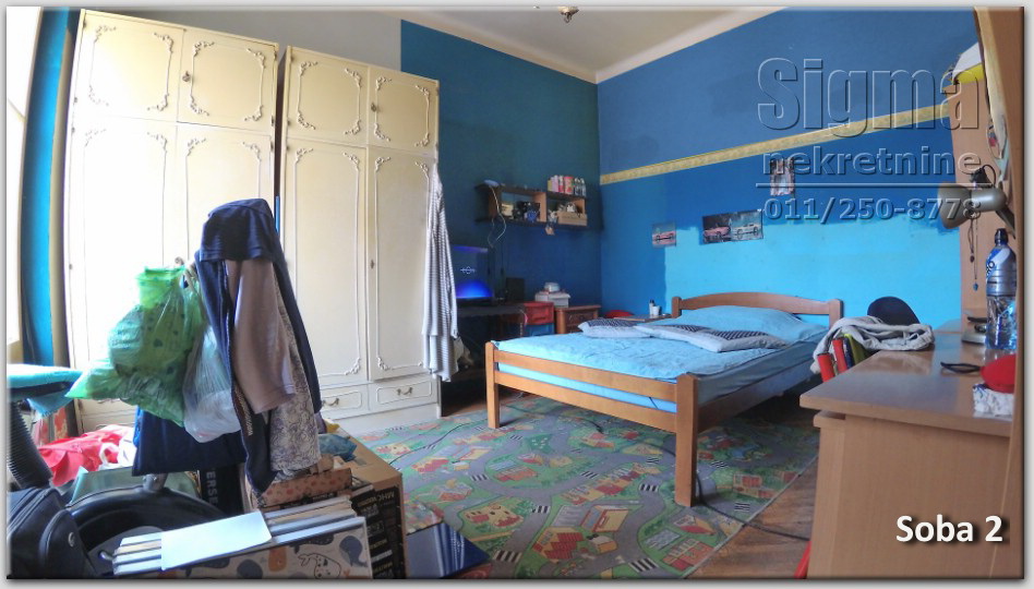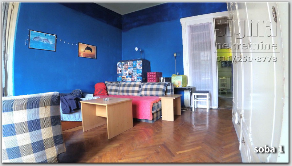 trosoban stan sa velikom terasom i 2 balkona, stambena zgrada izgrađena 1933, sprat: 1, cg, u izvornom stanju, za renoviranje, visina plafona 2,90.