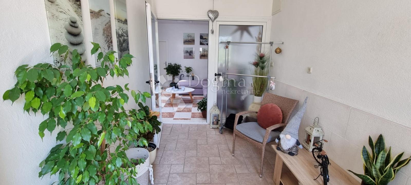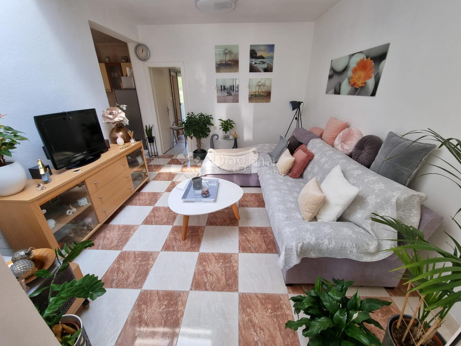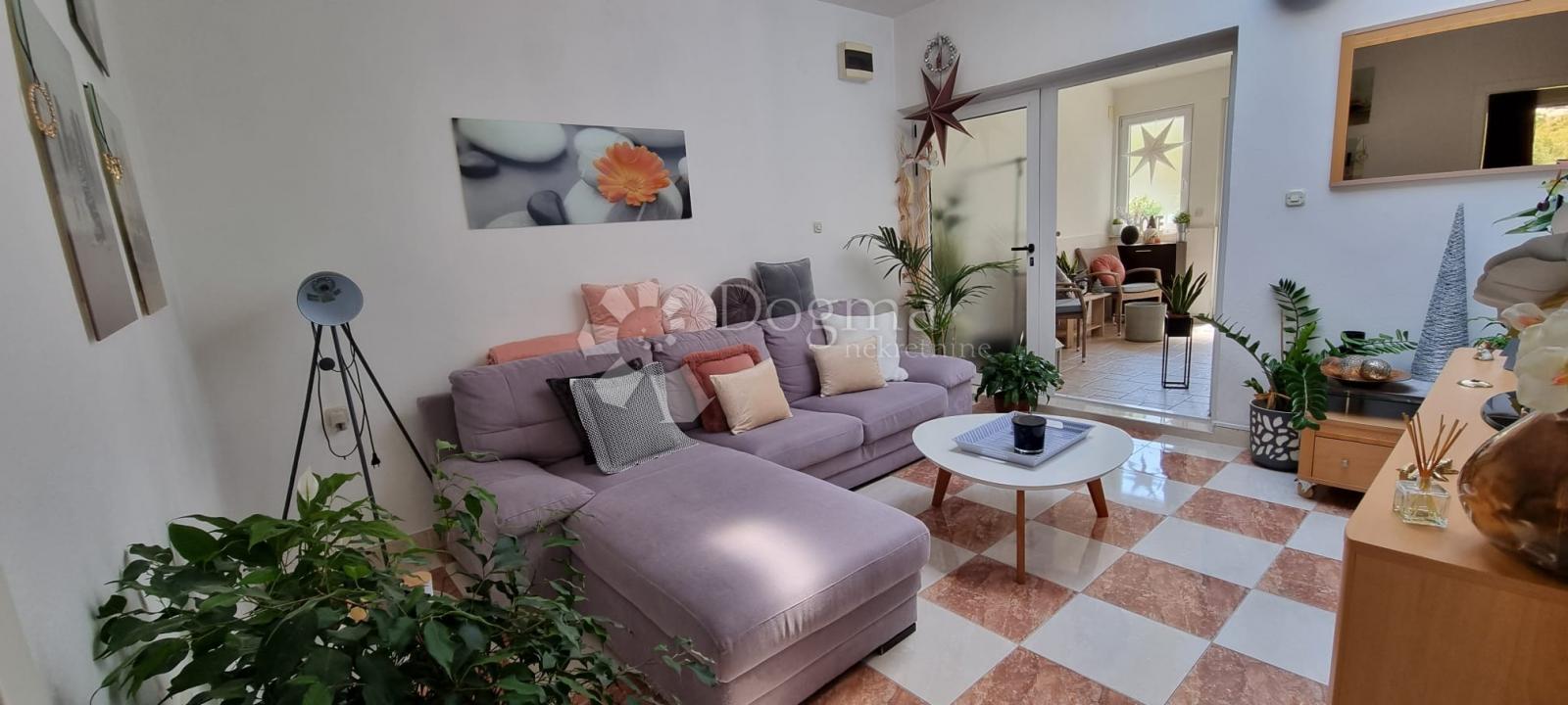 Iznajmljuje se lijepo uređen dvosobni stan od 80m2 u visokom prizemlju kuće, udaljen svega 4 km od centra Makarske.
