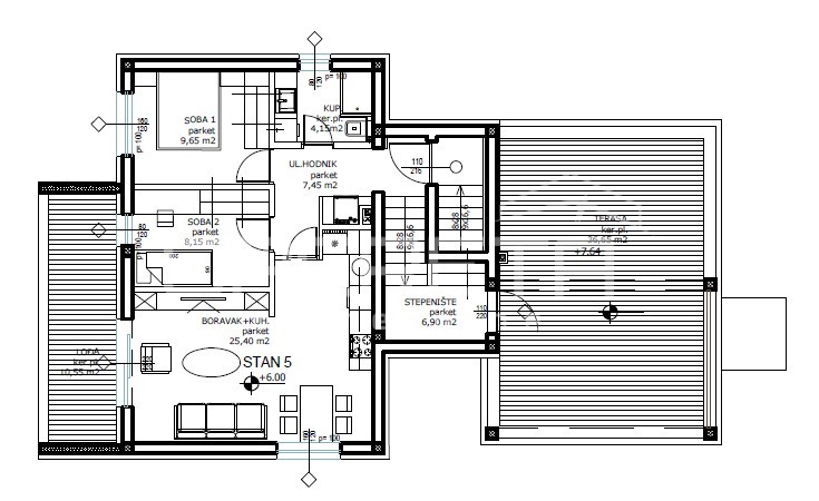 Opis: PRODAJA, STAN, NOVOGRADNJA, ZAGREB, GORNJA DUBRAVA, ČUČERSKA CESTA, PENTHOUSE, 94,00 m2, 3-sobanProdaje se penthouse na 2. katu novogradnje u Gornjoj Dubravi!Na lijepoj lokaciji prodaje se prostrani trosobni stan idealan za miran i kvalitetan obiteljski život.Stan S5 nalazi se na 2. katu suvremeno projektirane zgrade s ukupno pet stanova, što osigurava visoku razinu privatnosti i udobnosti. Zgrada ima tri etaže, a planirani završetak radova i useljenje predviđeni su za jesen 2026. godine.Površina zatvorenog dijela stana: 61,70m²Tlocrtna organizacija:- prostrani dnevni boravak s blagovaonicom i kuhinjom u open-space konceptu- 2 spavaće sobe - kupaonica s wc-om- nenatkrivena terasa (36,65m2) - loggia (10,55m2)- pripadajuće spremište- garažno parkirno mjesto (22,80m2) - vanjsko parkirno mjesto (12,50m2) Svaki stan dolazi s integriranim pametnim sustavom upravljanja putem centralnog zidnog touch zaslona....