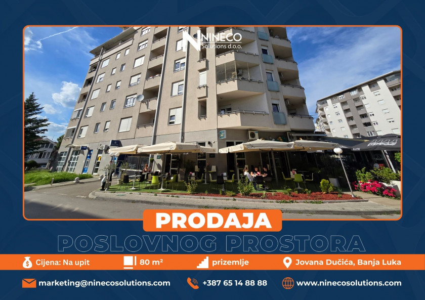 Prodaje se funkcionalan poslovni prostor u prizemlju stambene zgrade, smješten u jednoj od najtraženijih lokacija u Banjoj Luci - ulica Jovana Dučića, naselje Nova Varoš.