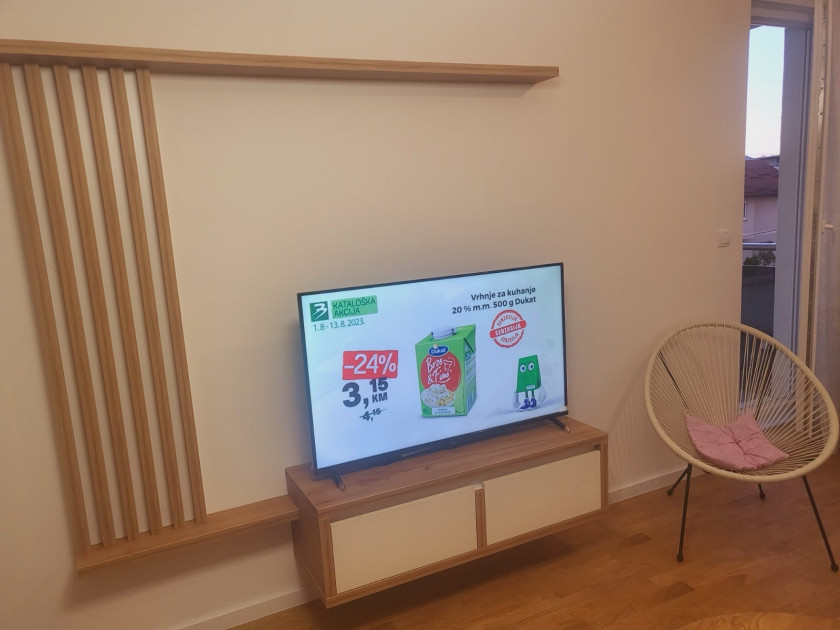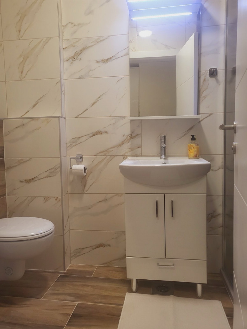 Stan se nalazi na prvom spratu u zgradi s liftom, sve prostorije su svijetle i komforne, a stan je moderno i kvalitetno namjesten.
