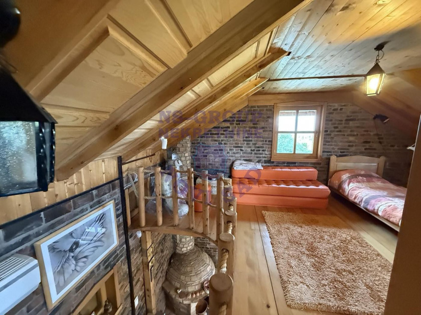 Opis: Ako želite da uživate u miru i neprocenjivom pogledu na Dunav, onda je ovo kuća za vas. Na samo 12km od centra Novog Sada nalazi se ova jedinstvena kuća, građena od prirodnih materijala, sa velikim placem. Nalazi se na izlazu iz Sremskih Karlovaca na uzvišenju. U prizemlju kuće nalazi se dnevni boravak sa kaminom i izlaskom na trem, kuhinja i kupatilo, dok je na spratu velika soba koja je pregradjena na dve komforne sobe. Kuća je građena od cigle, a enterijer je od drveta. Pored kuće se nalazi bazen sa zidanim roštiljem i garaža. Na ostatku placa je zasađena trava i voće. Na samom vrhu placa nalazi se bunker iz drugog svetskog rata, sa čijeg vrha se pruža divan pogled. Za više informacija pozovite... s25