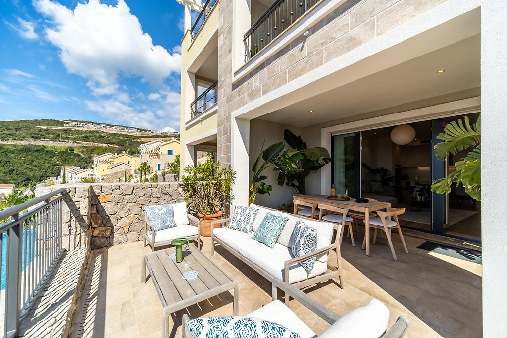 Opis: Luksuzni 2-soban stan sa dvoristem -- Lustica Bay Marina Village
