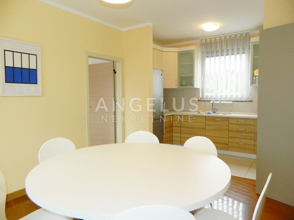 Nalazi se na zadnjem katu novije zgrade a, sastoji se od dvije spavaće sobe, ulaznog hodnika, 2 kupaonice, kuhinje sa blagovaonicom, garderobe, dnevnog boravka i dvije terase (31,51 m2 i 28,92 m2). Potpuno je namješten i ima parkirno mjesto u dvorištu zgrade. Plinsko centralno grijanje, klimatizirano. Dostupan za najam od 10. listopada 2025.