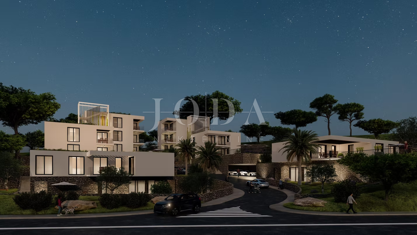 Opis: Na izuzetno atraktivnoj lokaciji u Primoštenu prodaje se prostran apartman oznake P1 A4, idealan za luksuzan i opuštajući boravak uz more. Apartman se sastoji od ulaznog hodnika, potpuno opremljene kuhinje, dnevnog boravka s blagovaonicom, dvije spavaće sobe i kupaonice. Posebnu vrijednost daje vanjski prostor – ljetna kuhinja, natkrivena i nenatkrivena terasa, ograđeni vrt, privatni bazen sa sunčalištem i ležaljkama. Uz apartman dolaze i ostava te vlastito parkirno mjesto.