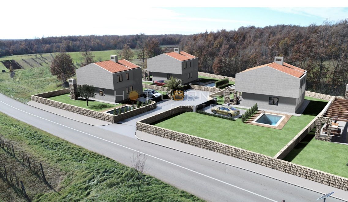 Za sve 4 parcele je već izrađen idejni projekt za izgradnju kuće katnice sa 3 spavaće sobe i 3 kupaone, sa bazenom, površine cirka 130 m2....