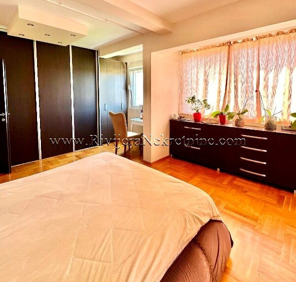 Struktura stana: hodnik, prostrano kupatilo, gostinjski WC sa vešerajem, velika spavaća soba sa terasom i garderoberom, dvije dodatne spavaće sobe, trpezarija sa kuhinjom i terasa sa djelimičnim pogledom na more.