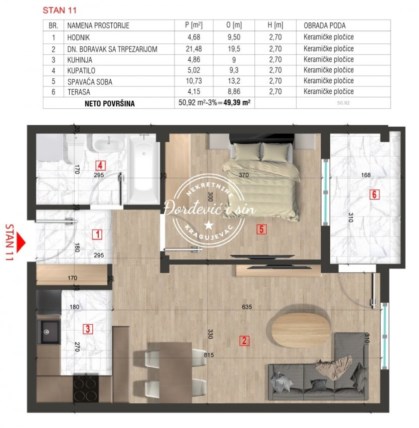 - Sprat 1: Stan 10 / 48.40m2 / 79.860 eura sa PDV-om