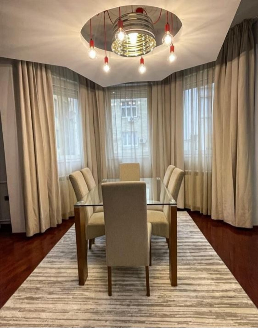 Opis: U samom srcu grada, nedaleko od Kalemegdana i pešačke zone Knez Mihajlove i svih komercijalno-uslužnih sadržaja, nalazi se ovaj prelepi stan od 100m2 u zgradi novije gradnje, veoma funkcionalnog rasporeda prostorija. Stan ima veoma prostran dnevno-trpezarijski deo, odvojen spavaći blok sa 2 spavaće sobe i kupatilom, vizuelno odvojenu kuhinju, ulazni hodnik sa toaletom, i veliku terasu orijentisanu ka dvoristu. Kompletno namešten, odmah useljiv. Postoji mogućnost zakupa garažnog mesta u garaži zgrade uz doplatu.