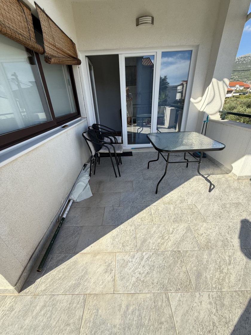 Stan se nalazi u mirnoj "slijepoj" ulici gotovo ne prometnoj, blizu mora, a svi drugi sadržaji udaljeni su na par minuta, škola 8min.