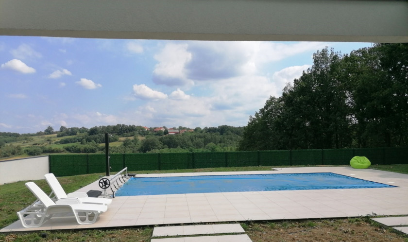 Ova, potpuno drugačija kuća od svih standardnih, bruto površine 245 m2, nalazi se na parceli površine 20 ari, delom pod šumom, koja ostavlja puno mogućnosti za dodatne sadržaje ili park prostor za uživanje u hladovini mladih stabala hrasta. Pored kuće je bazen 5x10m, dubine 1,5m, sa plažom.