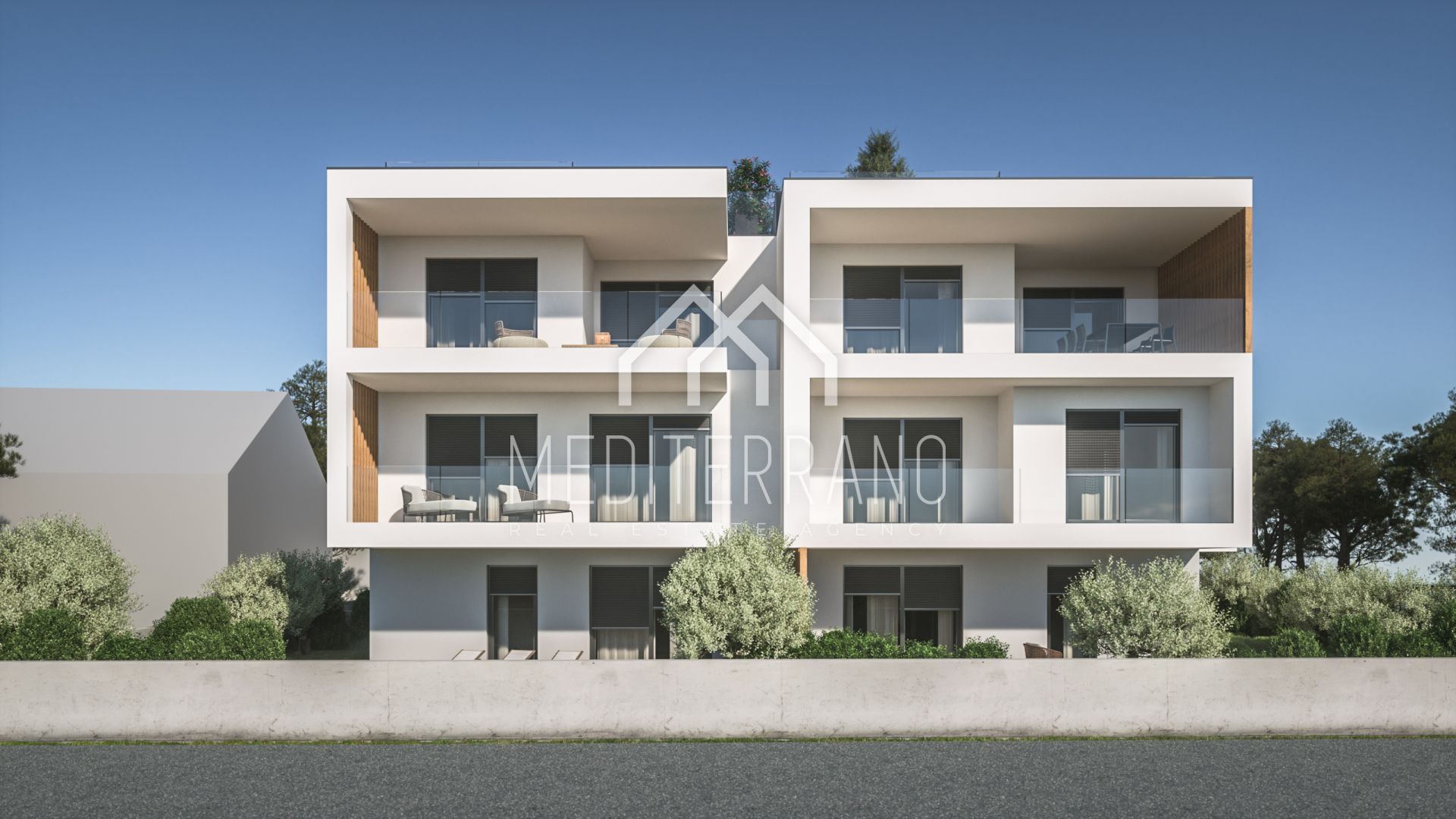 Opis: Na prodaju je dvosoban apartman smješten na izuzetnoj lokaciji u Vodicama, u modernoj novogradnji. Stan ukupne stambene površine od 49,01 m² sastoji se od dvije spavaće sobe, dnevnog boravka s kuhinjom, kupaonice i natkrivene terase površine 11,81 m². Stanu pripada i uređeno dvorište od 33 m² te jedno označeno parkirno mjesto.