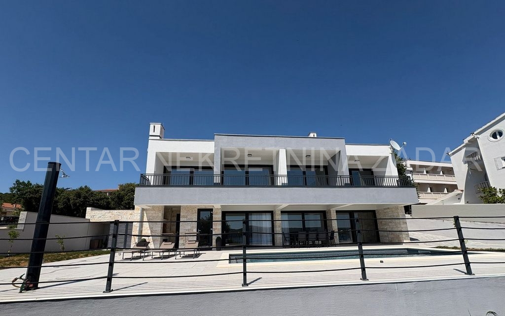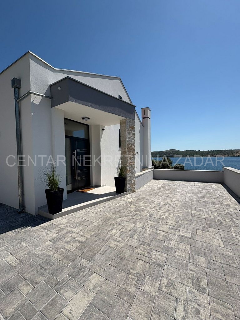 Prodaje se novoizgrađena villa u Posedarju, smještena na izvrsnoj, mirnoj lokaciji. Izgrađena je na zemljištu površine 1015 m² koje se prostire do samog mora.