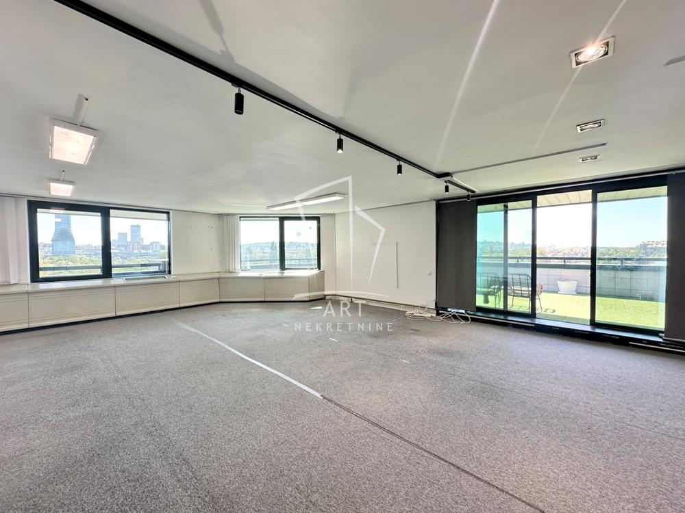 Opis: Prostor od 244 m2 se nalazi na trećem spratu poslovne zgrade u srcu poslovne zone Novog Beograda. Odlično je povezan sa svim delovima grada kao i aerodromom. Prostor se sastoji od 5 kancelarija različitih veličina,od kojih je jedna veliki open space od 79m2 ,kuhinje,3 toaleta i terase sa koje ee pruža predivan pogled. Prostor će biti okrečen i biće postavljeni novi itisoni.Postoji mogućnost dodatnog pomeranja pregrada kako bi se prostor prilagodio potrebama budućeg zakupca.Izuzetno svetao i prozračan prostor.Grejanje i hlađenje je pomoću fan coila,zgrada poseduje 24/7 službu obezbeđenja kao i veliki prijemni pult. Veliki broj internet operatera je prisutan u zgradi. Postoji mogućnost zakupa parking mesta koje se dodatno naplaćuje.Odličan prostor na odličnoj lokaciji.