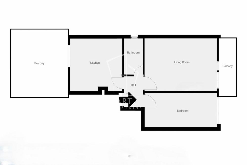 Raspored prostorija: Ulazno predsoblje, spavaća soba, dnevna soba i izlaz na terasu, kupatilo sa prirodnom ventilacijom, kuhinja sa trpezarijom i izlazak na dvorište koje koristi samo ovaj stan.