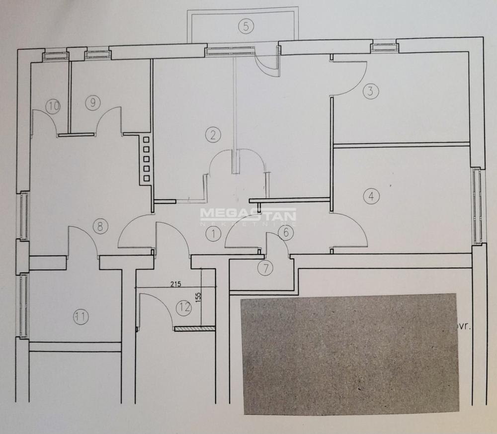 Stan se sastoji od kuhinje, dnevne sobe, pet spavaćih soba, kupatila, toaleta, predulaza i terase.