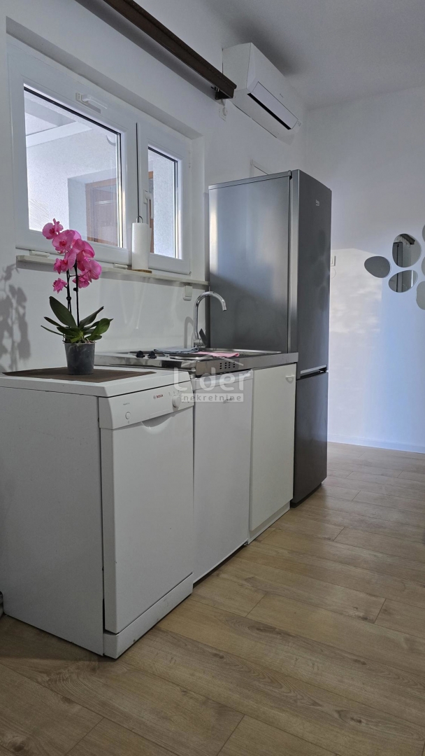 Stan je potpuno namješten i opremljen: perilica rublja, perilica suđa, ploče za kuhanje, dva frižidera, TV, klima uređaj (dnevni boravak i kuhinja), Glamox radijatori u svakoj prostoriji, tri kreveta.