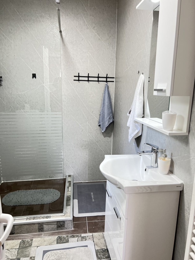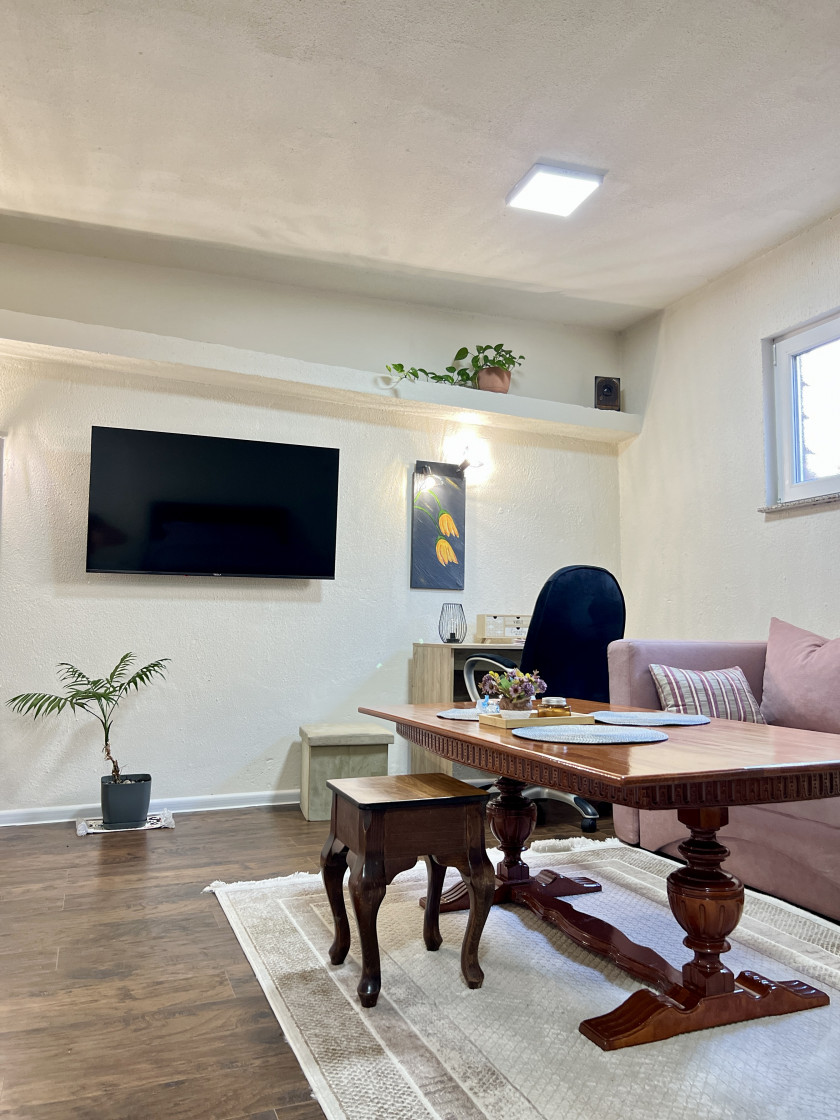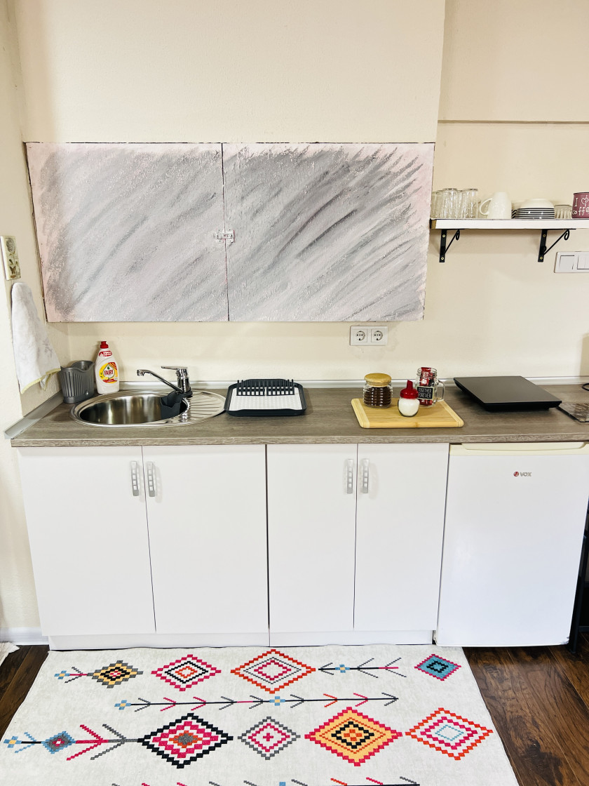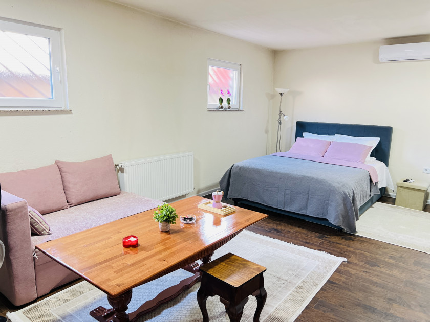 Opis: Studio apartman u prizemlju ima sve potrebno za noćenje i duži boravak, osiguran parking prostor u sklopu objekta, studio apartman ima mini kuhinju, klima uređaj Wi Fi i smart Tv