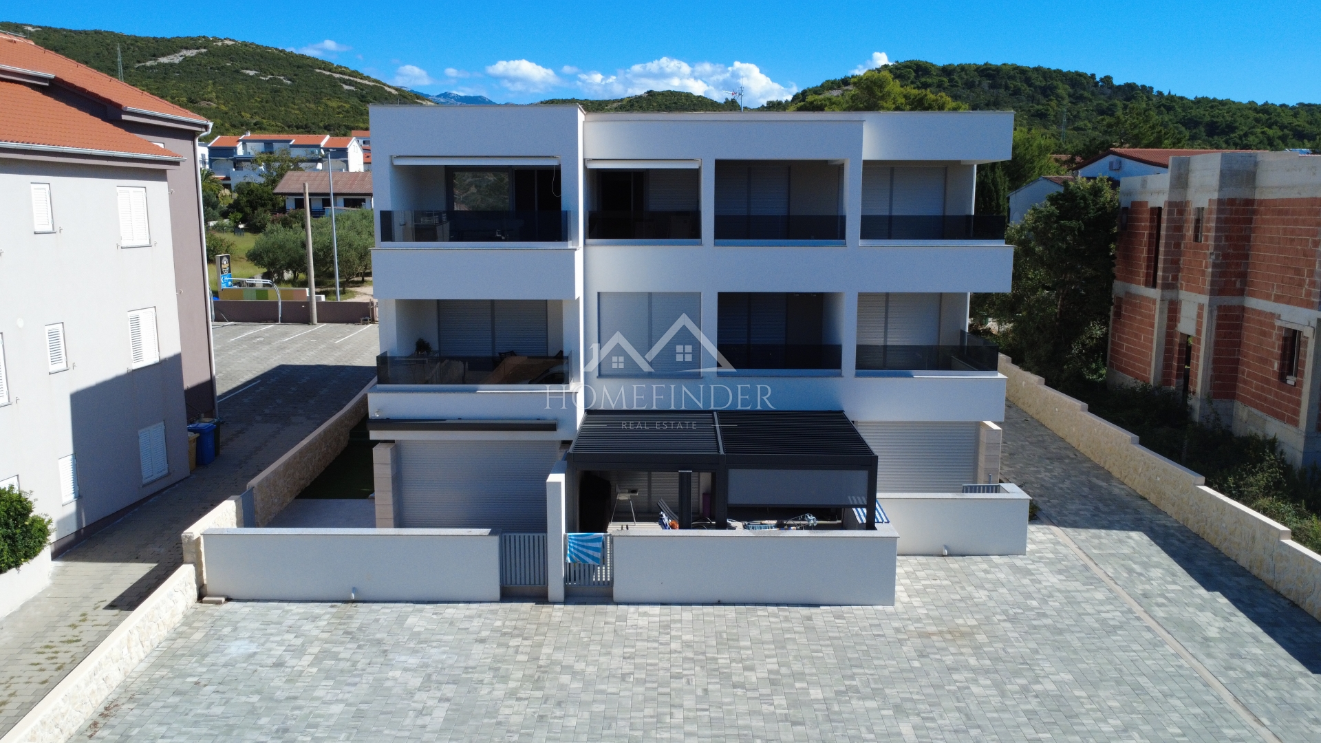 Na prodaju je vrhunski uređen stan u prizemlju moderne zgrade, smješten svega 30 metara od mora u Staroj Novalji. Stan je potpuno namješten i opremljen vrhunskim materijalima te spreman za useljenje bez dodatnih ulaganja.