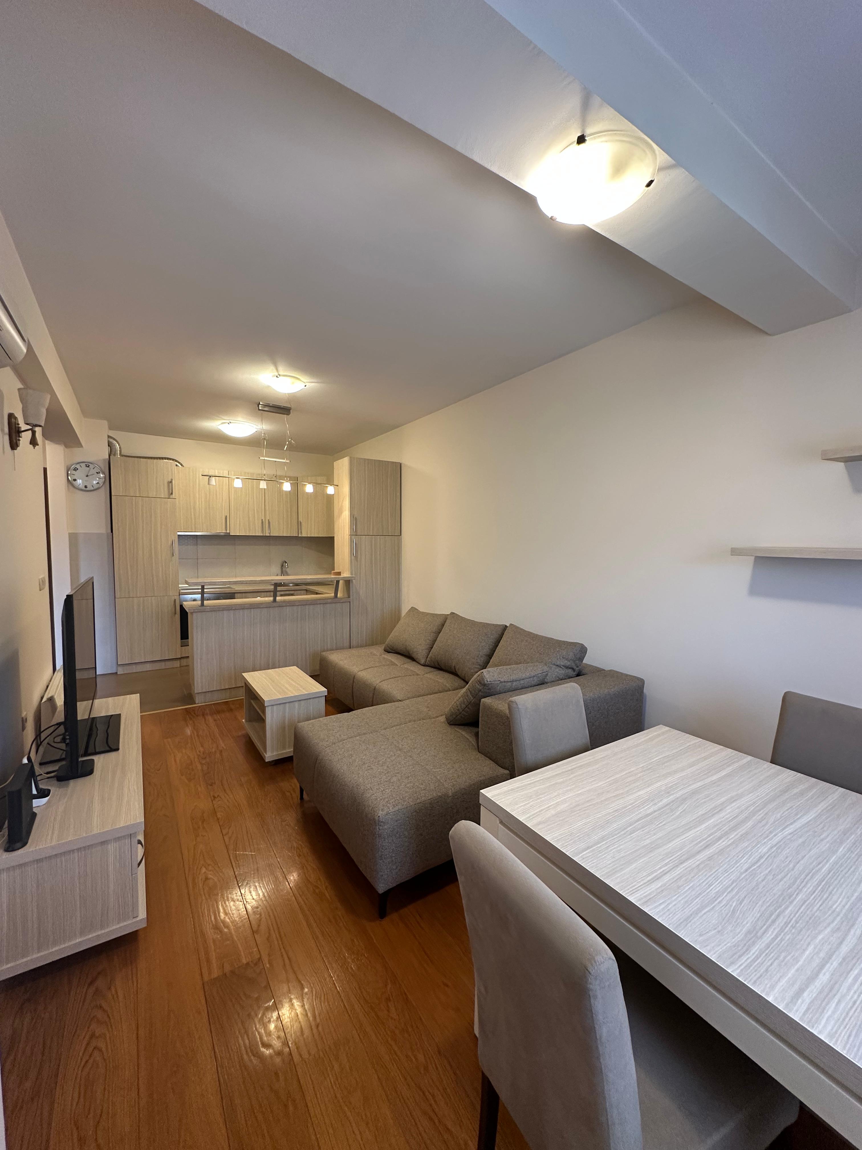 Opis: Modern one-bedroom apartment with a garage space, ideally located in the center of Tivat, just steps from Pine and Porto Montenegro. For more information please call.