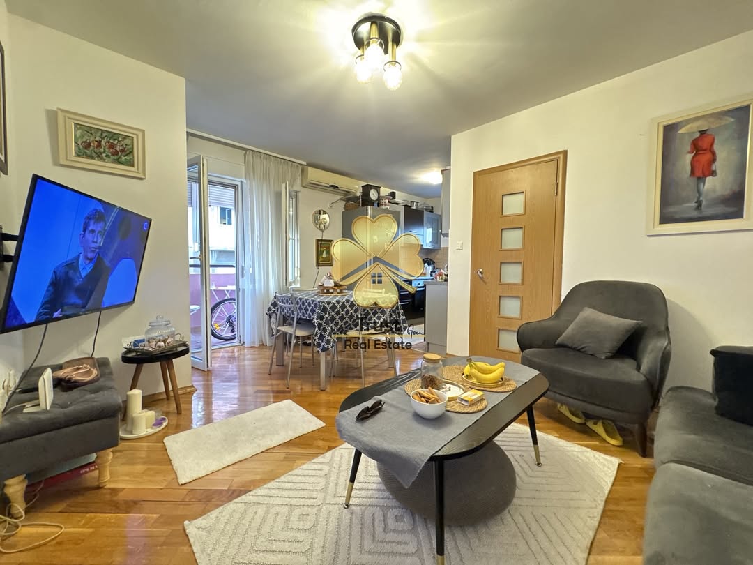 Opis: Na prodaju je namješten dvosoban stan u Bloku 9, površine 50 m². Nalazi se na visokom prizemlju manje stambene zgrade koja ne posjeduje lift. Stan se sastoji od ulaznog hodnika, dnevnog boravka sa kuhinjom i trpezarijom, dvije spavaće sobe, kupatila i terase.