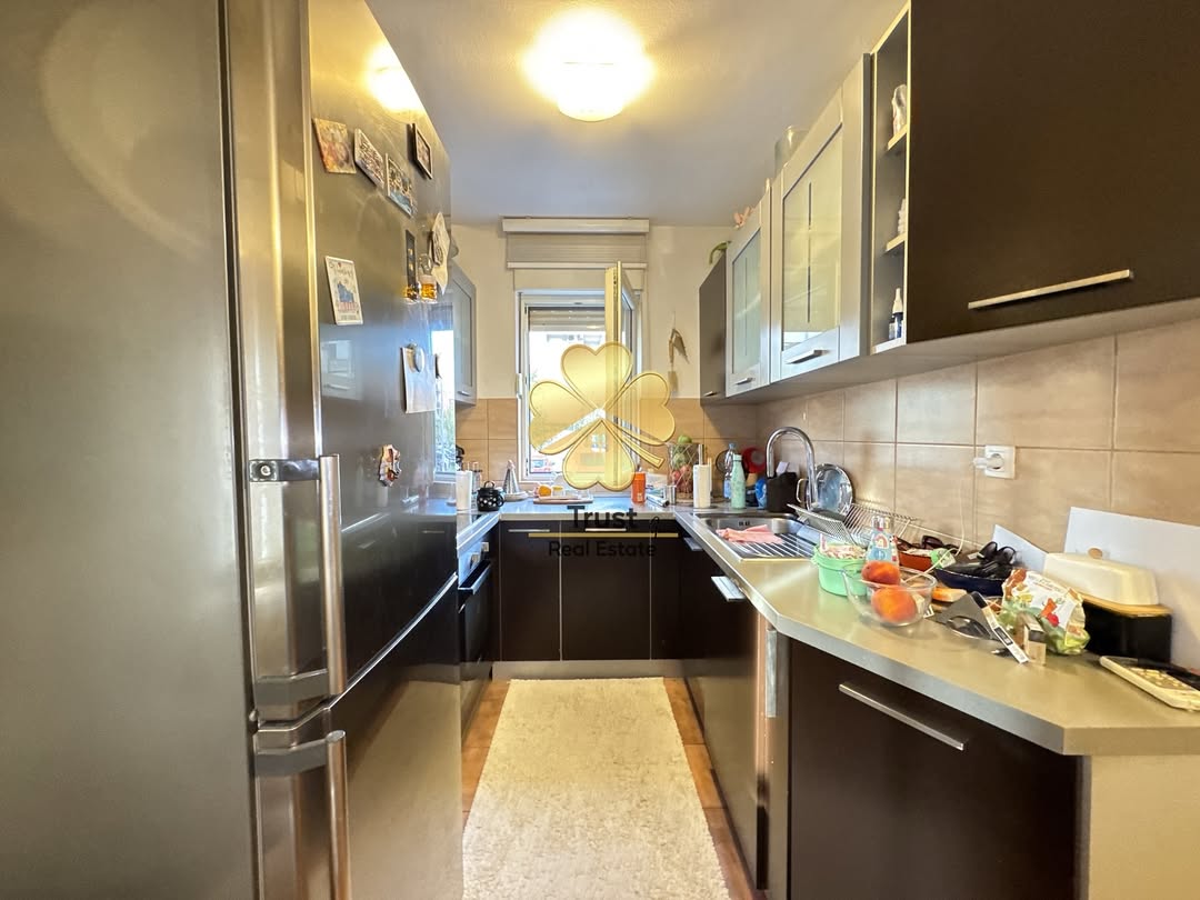 Prodaje se polunamješten, s obzirom na to da će trenutni vlasnik iznijeti namještaj iz dječije sobe, kao i frižider i mašinu.
