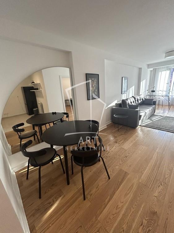 Opis: Kompletno renoviran stan, opremljen potpuno novim nameštajem, smešten u strogom centru grada, na svega par minuta hoda od Terazija i Knez Mihailove ulice.