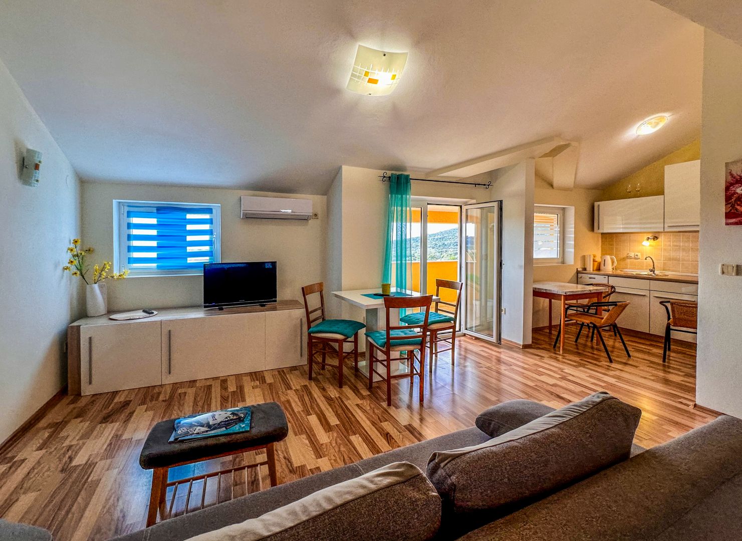 Opis (Engleski): Discover a stunning 65 m² apartment for sale on the second floor of a newly built house in Mali Lošinj, one of the Adriatic’s most picturesque islands. Fully renovated and move-in ready with no additional investment needed, this apartment includes one dedicated parking space. Featuring three comfortable bedrooms, a spacious living room with an integrated kitchen and dining area, and a modern bathroom, the apartment is designed for both comfort and style. High-quality carpentry and built-in air conditioning ensure energy efficiency and year-round coziness.The expansive loggia offers breathtaking views of the sea and pristine nature, while the quiet location guarantees privacy and relaxation. Just 200 meters from a clean, natural beach—a pleasant five-minute walk—this property is perfect for family vacations or as a lucrative tourist rental opportunity. A short ten-minute drive from the vibrant center of Mali Lošinj provides the ideal balance of tranquility and access to essential amenities, including restaurants, shops, and cultural attractions....