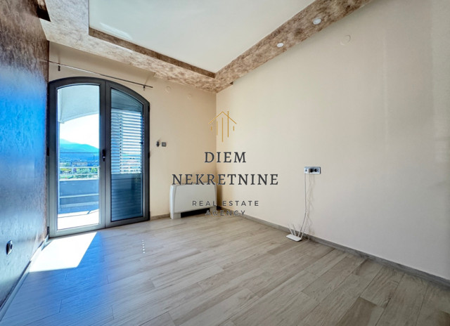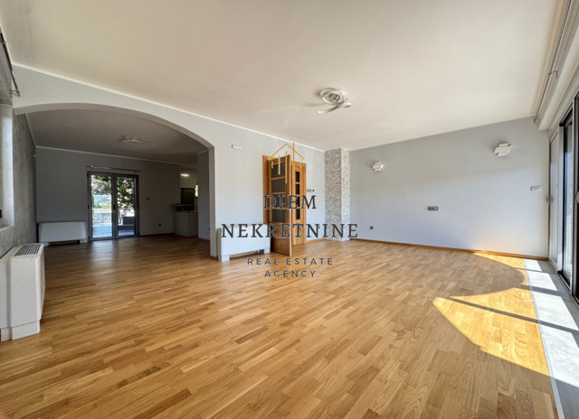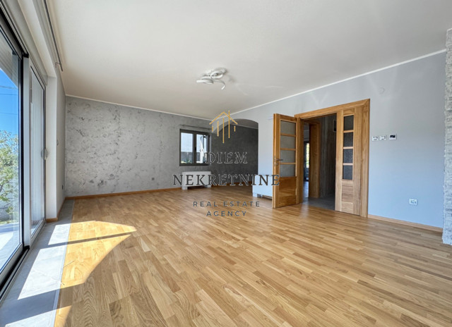 U prizemlju se nalazi prostran dnevni boravak povezan sa kuhinjom i trpezarijom, jedna spavaća soba, kao i tri terase.